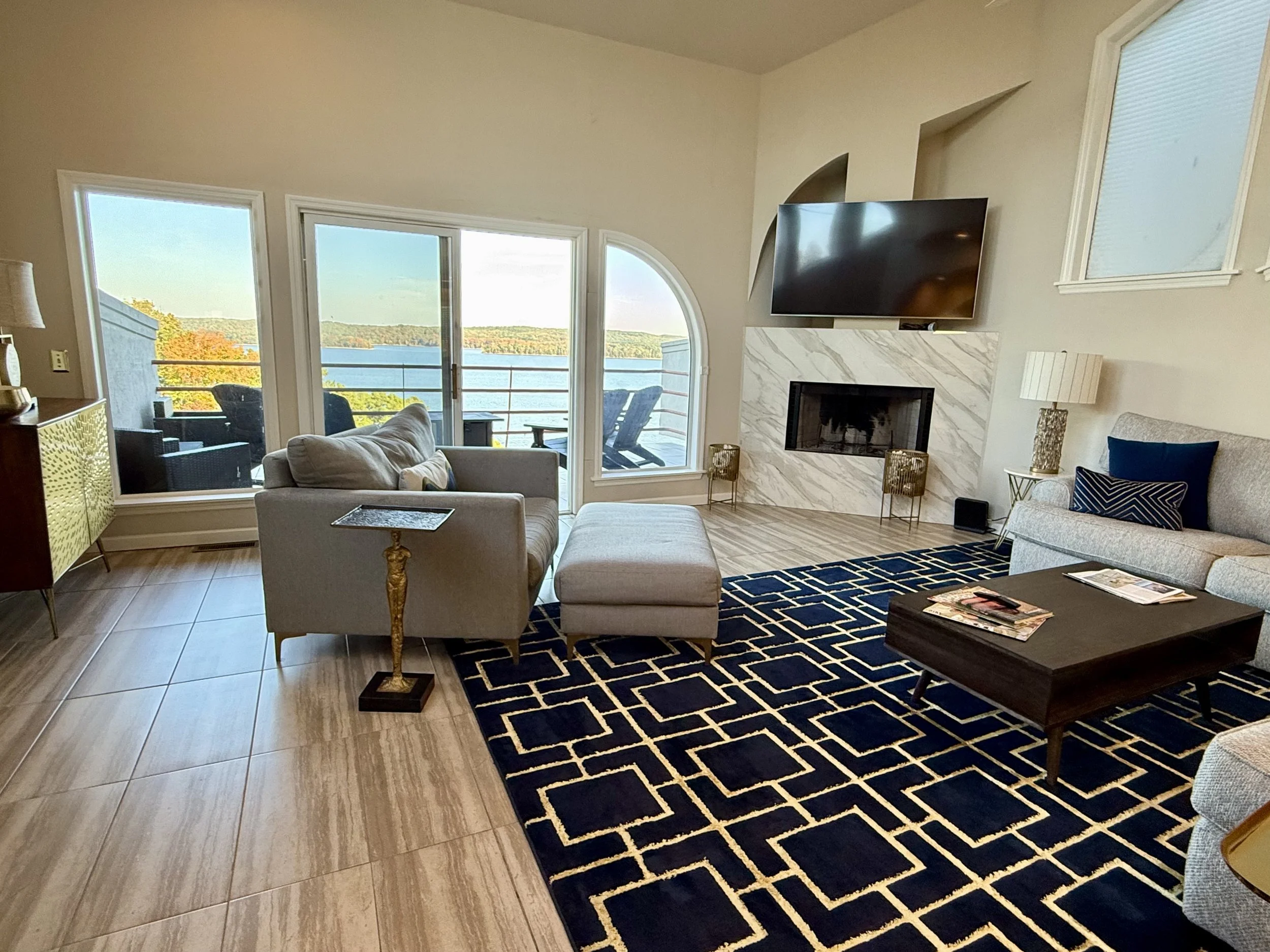3 bedroom 3 1/2 bathroom 3 story Villa. Sleeps 8. Bedroom 1 is a master loft with a king bed and a private spa like ensuite with a whirlpool tub, separate shower, double vanities, and walk in closets. Bedroom 2 is on the lower level with a private bathroom and a King bed. There is an additional twin bed located in an alcove under the stairs for additional sleeping. Bedroom 3 and the washing machine and dryer are also on the lower level. The 3rd bedroom has a queen bed and a balcony with breathtaking views of the Lake. The kitchen, bar seating, livingroom, diningroom, 1/2 bath & balcony are on the main level overlooking the Lake with spectacular unobstructed water views. There is private access from the unit to the boat slip in the Lands of Pickwick Marina accessible via stairs and a seasonal swimming pool for guests use. HD Smart TVs and free high speed WiFi as well as fire pit tables and propane gas grills are provided. Parking is marked and is directly in front of the unit.